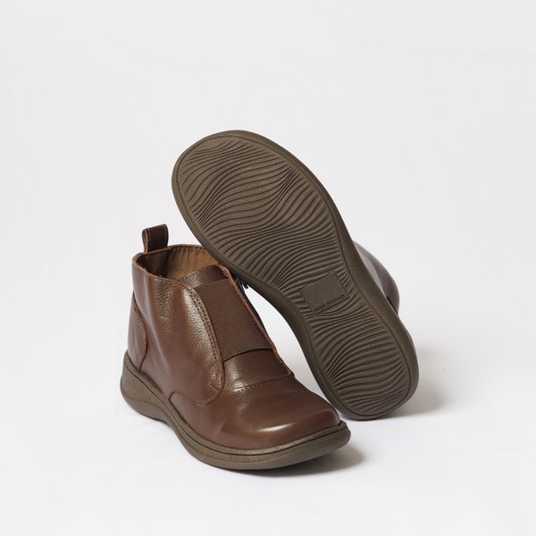 O elástico lateral proporciona um ajuste confortável e facilita o calce, enquanto a estrutura anatômica da bota garante excelente suporte ao pé, sendo perfeita para quem precisa de um calçado prático e confortável para o uso diário.
