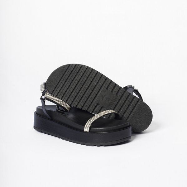 Design: Modelo sandália feminina, podendo apresentar tiras ajustáveis (velcro ou fivela) ou tiras elásticas para facilitar o calce e garantir firmeza. O design pode ser casual ou levemente social.